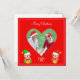 Coração de dentro de casal personalizado e bonito, e elfos bonitos, no Cartão de Saudação de Natal vermelho. Texto pronto para ser personalizado. Foto personalizada,