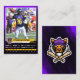 Este cartão de troca de futebol personalizável é a maneira perfeita de mostrar o espírito da sua equipe! Apresenta um design roxo e preto arrojado com uma violenta mascote vermelha de pássaros. Você pode personalizar o cartão com o nome, o número e as estatísticas do seu jogador favorito. Este cartão é excelente para colecionadores, fãs e jogadores.