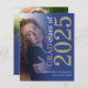 Um valor para o alternativo do ORÇAMENTO em tamanho menor de 4,5 x 5,6" de semirbrilho de 110 lbs, que é de espessura semelhante a um cartão postal (no entanto, não é adequado para uso como cartão postal). POR FAVOR, NOTE que existe UM por folha. Foto do Orçamento 2 Anúncio de Graduação Dourado 2025 Azul. Um design de texto e foto modernos para anunciar a notícia do formando da classe do mais velho, com na moda grande tipografia rotacionada e do lado direito no topo em preto e ouro. Personalize facilmente o resto do texto, incluindo a sua mensagem no verso. Substitua as fotos nos modelos de cada lado por suas próprias fotos.
