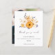 Um alternativo de 4,5 pol x 5,6 pol com preço inferior. Disponível em um STOCK DE CARTÃO SEMI-GLOSS 110 lb, que é a opção padrão (mais espesso para convites), OU um STOCK de PAPEL THINNER FINISH 80 lb FINISH (ideal para gabinetes). Os envelopes são um extra opcional e são ligeiramente maiores que o tamanho da placa. Estilo botânico para o seu obrigado você está atrás do seu grande dia com um belo buquê de Watercolor florals em tons de amarelo e creme e cinza folhagem roxa no topo e obrigado tanto em um conjunto de roteiro moderno. O resto do texto que você pode personalizar facilmente. Troque a sua foto favorita do seu dia de casamento nas costas e seus convidados terão uma bela guarida da ocasião.