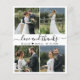 Mão branca e preto elegante e minimalista escreveu 4 fotos colagem personalizada obrigado de casamento que você personalizou barato de baixo orçamento com cartão THIN. ***POR FAVOR, REMOVA PARA BAIXO PARA OBTER MAIS INFORMAÇÕES!*** Na moda modelo de cartões de agradecimentos de casamento com quatro (4) fotos na frente e uma (1) foto no verso. Com o texto "Amor e obrigados" em um robusto guiado de letras tipográficas, o script de fontes swash tail em preto sobre fundo branco. Pequena forma cardíaca entre os nomes. Personalize seu nome e obrigado da mensagem. *** POR FAVOR, NOTE! *** O PAPEL ORÇAMENTAL/FLYER É MAIS FINO DO PAPEL. *** ATUALIZE O PAPEL PARA UM PAPEL MAIS ESPESTO. *** Cardstock Tradicional com Envelopes: https://www.zazzle.com/love_and_thanks_script_4_photo_collage_wedding_thank_you_card-256399236762935958 https://www.zazzle.com/love_and_thanks_script_photo_collage_wedding_thank_you_card-256150587736007499 Cartão-postal: https://www.zazzle.com/love_and_thanks_photo_collage_wedding_thank_you_postcard-256429336685296956 Se você preferir escrever manualmente sua nota, basta apagar o texto do exemplo para ganhar mais espaço. ++ Se você fizer alterações e o design for cortado ou não parecer direito na tela, peça ajuda ao SERVIÇO DE DESIGN LIVE. Seu pedido vai diretamente para as impressoras. O que você vê na tela é o que será impresso e enviado a você. Portanto, VERIFIQUE TRIPLA todas as informações, fotos e por erros ortográficos do seu texto porque você receberá exatamente o que você vê, NINGUÉM VERIFICARÁ NADA ANTES DE IMPRIMIR.