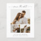 Um casamento com fotos Elegante do Budget Script 3 Salve a placa de data apresentando um simples design moderno com colagem de fotos na frente. O verso tem texto para detalhes adicionais. Clique no botão personalizar para personalizar este design com suas fotos e detalhes.