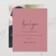 Roteiro Foto Dusty Rosa, Obrigado. Um alternativo de 4,5 pol x 5,6 pol com preço inferior. Disponível em um STOCK DE CARTÃO SEMI-GLOSS 110 lb, que é a opção padrão (mais espesso para convites), OU um STOCK de PAPEL THINNER FINISH 80 lb FINISH (ideal para gabinetes). Os envelopes são um extra opcional e são ligeiramente maiores que o tamanho da placa. Um design de tipografia minimalista com um script de estilo de letra de na moda definido para Obrigado. No verso, substitua a imagem por sua favorita do dia como guardiã para seus convidados. Personalize facilmente o resto do texto com sua mensagem e nomes.