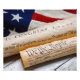 Cópias da Declaração de Independência e da Constituição dos EUA em pergaminhos enrolados com uma vintage bandeira americana
