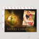 Um design de cartas cristão moderno de Natal com sua foto familiar e nomes acima de um brilhante ouro brilhante Feliz Natal. Espetacular.