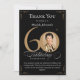 Foto Dourada preta 60º Cartões de agradecimentos de aniversário. Um cartões de agradecimentos especial de celebração de aniversário, elegantemente projetado, com uma foto personalizada de pessoa de aniversário e caligrafia de script com elementos florescentes de vintage. Simples o suficiente para ajustado de uma variedade de temas e cores! Precisa de ajuda com o modelo? Basta entrar em contato comigo!