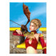 Renderização digital 3D de uma bela Dragão Senhora com um pequeno Dragão no braço num castelo de conto de fadas e um fundo azul do céu
