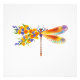 Pintura artificial, libélula floral em laranja e roxo contrastantes com papoila amarela, brilhante e florescente da Califórnia e flores silvestres azuis em fundo branco.