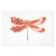 Articulado artificialmente, ouro, libélula joalhada com vermelho e asas decoradas com cereja japonesa vermelha, florescente e joalhada sobre fundo branco. Dourada Dragonfly.
