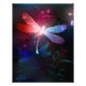Luminosa, voadora, libélula vermelha, com asas transparentes e detalhadas sobre fundo escuro, noturno, luminoso com plantas tropicais e vagalumes. libélula vermelha.