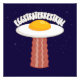 Vetor cartoon ilustra um delicioso e ensolarado OVNI fritado com um raio trator de fatia de bacon com texto EGGSTRATERRESTRIAL. Palavras-chave: ovo, bacon, café da manhã, OVNI, alienígena, ensolarado, lado, desenho animado, espaço, extraterrestre, comida, fofo, gema, ficção científica, ficção, marciano, humor, carne, porco, rapto