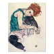 Egon Schiele Seated Woman impressão. Crayon, Gouache e aquarela no papel, de 1917. Uma das obras mais famosas do artista austríaco Egon Schiele, a Mulher Sentada com Bent Knee apresenta uma jovem ruiva bonito vestindo miras pretas que descansam a bochecha no joelho. Um belo presente para fãs de Egon Schiele, Expressionismo e Arte Austríaca.