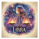 Assuma a graça e harmonia de Libra com este trabalho de arte celestial impressionante. Apresentando uma figura divina como deusa, seu cabelo fluente iluminado pela poeira estelar cósmica, ela simboliza paz, amor e equilíbrio. As escalas de ouro da justiça, brilhando com uma luz etérea, refletem a procura de equilíbrio e justiça por parte de Libra. Enrolado em vibrantes espirais de violeta profunda, azul cósmico e rosa macio, esta peça encarna perfeitamente o encanto venusiano de Libra e a beleza estética. Um presente ideal para indivíduos Libra, amantes da astrologia, e para aqueles que apreciam elegância em design.
