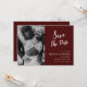 Este elegante Salve a Data com Foto - apresenta caligrafia branca e local para a sua foto no fundo borgonha. O verso do convite é borgonha. Você pode adicionar sua própria foto ou deixar esta foto em um estilo clássico. Se precisar de ajuda para processar sua foto, por favor me escreva uma mensagem.