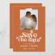 Esta Foto em Laranja Retroativa Salva o Anúncio de Data é perfeita para um casal simples. Este olhar retrorreflector moderno é excelente de minimalista e a paleta de cores emite um tal sentimento retrorreflector da década de 70. Anuncie seu dia especial no estilo de vintage moderno.