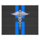 O Símbolo Símbólico do Símbolo Médico de Caduceus RN design apresentado aqui num fundo impresso de listras de sotaque de fibra de carbono. Os cobras caduceus são feitos para parecerem feitos de cromo. Bom para a formatura, para a sua profissão, ou para um presente com aquele olhar médico que você está procurando.
