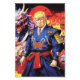 Este trabalho de arte cativante retrata o presidente Trump como um poderoso guerreiro samurai que está confiante em um pano de fundo feroz. Ele está vestido com uma armadura tradicional de samurai azul e ouro, segura uma katana e é cercado por demônios mitos e ferozes. O céu vermelho intenso e as chamas somam à atmosfera dramática e fantástica, fazer esta imagem de uma representação marcante de uma cena de batalha heroica.