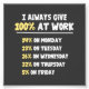 Eu dou 100% no trabalho! Tecnicamente, a matemática funciona. Celebre sua falta de motivação profissional...Não vista essa camisa para funcionar e revele sua lacuna matemática.