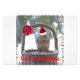 Um esquilo vestindo um chapéu de Papai Noel está sentado em uma cesta decorada com uma caixa enquanto a neve cai ao seu redor. As luzes de Natal à volta da borda da foto e as palavras "Feliz Natal" são impressas em letras vermelhas na parte inferior. A foto é cercada por designs com floco de neve estampados.