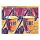 Uma design de arte retrógrada de baldes de fogo em uma antiga estação ferroviária vitoriana.
