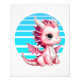 Este design apresenta um dragão rosa fofo com olhos azuis grandes e um nariz pequeno. O dragão tem dois pequenos chifres na cabeça e uma fileira de picos nas costas. O dragão tem duas pequenas asas e uma longa cauda. O fundo é um círculo azul com faixas horizontais. Este adesivo é perfeito para quem ama dragões, fantasias, animais ou estilo kawaii.