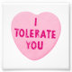 Suponho que seja tolerável. Ok, eu tolero você, certo? Perfeito para relações medíocres e pouco aceitáveis. Espero que você ame um Dia de os namorados sarcástico e engraçado.