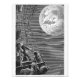 A hot-air balloon is flying far away from the Earth, which the seemingly awestruck passengers can see in the background.