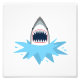 Um desenho bonito de um tubarão branco excelente saltando das ondas com suas mandíbulas dentadas bem abertas.