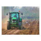 Preparando para a próxima safra. O trator arado (arado) o campo e as aves selvagens procuram comida no solo recém-virado. Watercolor Inglaterra.