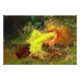 Impressão com a pintura de Arthur Wardle A Fairy Tale (1895). Uma jovem de cabelo comprido veste um vestido amarelo e dorme em uma floresta verde ao lado do veado, coelho e pavão. Um belo presente para amantes de contos de fadas e entusiastas de arte ingleses!