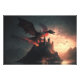No reino da fantasia e das criaturas míticas, um dragão feroz, inspirado pela intrincada arte popular, lança um ataque feroz a um castelo majestoso. Com escalas e asas espalhadas por toda parte, o poder primário e a proeza mítica do dragão são claramente representados nesta cena dramática. Evocando um senso de lendas antigas, os detalhes intricadamente trabalhados do dragão e do castelo misturam elementos do folclore com um toque de energia crua e indomada. Em meio ao caótico fogo das chamas e aos intrincados motivos folclóricos, essa representação captura a luta dos eternos entre forças primitivas e civilização humana, mostrando o fascínio constante pela interação entre mito e realidade.