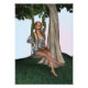 Renderização digital em 3D de uma linda garota com cabelo comprido vermelho no balanço da fantasia