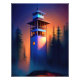 Esta impressionante imagem noturna captura a beleza e a magia de uma torre cercada por árvores. As cores mudas e pinceladas suaves criam uma sensação de paz e tranquilidade, enquanto a atmosfera misteriosa convida o espectador a explorar os segredos escondidos da floresta.