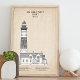 Esta ilustração única do Farol Big Sable Point é apresentada como uma planta em tons sépia, combinando a precisão do desenho arquitetônico com o calor da memória histórica. O fundo marrom suave evoca papel envelhecido e planos de engenharia antigos, dando à estrutura uma qualidade atemporal e de arquivo.