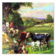 Uma fotografia de um dominio público melhorada de uma cena de fazenda antiga de um livro de histórias de bíblias para crianças. Os animais incluem vacas, cavalos, ovelhas, patos, galinhas, galo e mula.