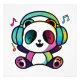Feliz Urso de Panda com fones de ouvido ouvindo música. estilo Kawaii.