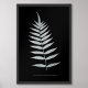 Desenho de Fern. Polpodídio Fraxinifolium. Ilustração botânica do século XIX preto e branco de uma samambaia com sotaques azuis turquesa. Efeito de raio-X. Fundo preto e contorno ou contorno branco Cores invertidas negativas