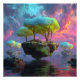Foto Floating Turquoise Tree Islands Neon Sky