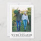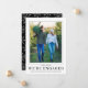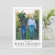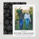 Compartilhe o seu noivado com amigos e familiares com este anúncio de noivado. O modelo DIY é fácil de usar. Você pode facilmente carregar uma foto dos dois, alterar os nomes e adicionar uma mensagem personalizada. As pessoas vão adorar ver vocês dois juntos. A parte de trás tem um padrão de floco de neve elegante que envolve uma linha de texto.