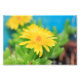 Uma fotografia de uma flor suculenta amarela feliz contra um fundo azul-turquesa.