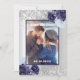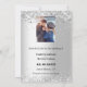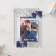 Fundo com aspecto fino prateado, decorado com flores azuis e azuis-marinhos, flores e brilho fino prateado, faíscas. Personalize e adicione sua foto, nomes e detalhes do casamento.