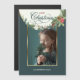 Fronteira elegante de flores de inverno, pinheiro, rosas e eucalipto com caligrafia personalizada de Feliz Natal, recorte fotográfico com gradiente dourado e campo de texto editável sobre fundo verde-caçador rico. A cor do texto da caligrafia é personalizável.