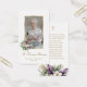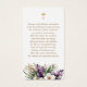 Cartões elegantes, de cor branca e dourada, para fotografia floral/memorial/oração, com um arranjo floral com flores roxas, orquídeas brancas e verde.