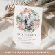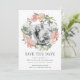 Nosso Farol de MidSummer salve a data card armou sua foto favorita de noivado com uma coroa redonda de rosa de aquarela pintada e flores de pénia em tons suaves de rosa-pincel, pêssego e creme, acentuados com verde e eucalipto. Uma escolha moderna e elegante para casamentos de primavera ou de verão. Personalize com seus nomes, data do casamento, local e site de casamento usando os campos fornecidos.