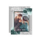 Fundo de aspecto fino prateado, decorado com flores verdes, flores e brilho fino prateado, brilhos. Personalize e adicione sua foto, nomes e detalhes do casamento.