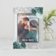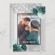 Fundo de aspecto fino prateado, decorado com flores verdes, flores e brilho fino prateado, brilhos. Personalize e adicione sua foto, nomes e detalhes do casamento.
