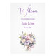 Este sinal de boas-vindas para casamentos mostra um buquê de aquarela pintado com uma fonte de caligrafia incrível e uma fonte moderna.
