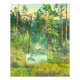 aquarela na seda - equipamento manual; paisagem verão pequeno rio na floresta