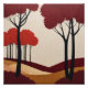 Uma representação vibrante e atraente de uma floresta com árvores vermelhas ferozes. Este trabalho de arte único certamente adiciona um toque de drama e conversa a qualquer espaço.