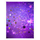 Fundo de faturas violetas com estrelas douradas e azuis. Fundo com estrelas.